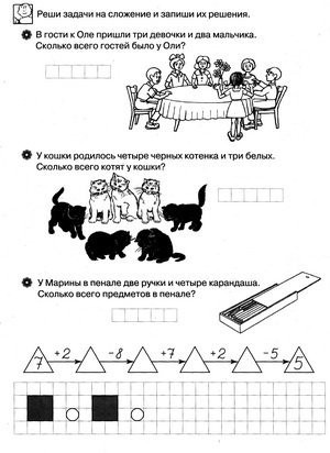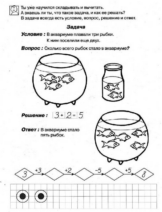 Перед вами рабочая тетрадь, которая в доступной, игровой форме научит детей, поступающих в школу, решать простые математические задачи на сложение и вычитание, а также логические задачи на сообразительность. Дети познакомятся с составом задачи, поймут, что в задаче всегда есть условие, вопрос, решение и ответ. Внизу каждой страницы малыши найдут математическую цепочку, с помощью которой они смогут еще раз потренироваться в решении примеров на сложение и вычитание. Занятие недолжно превышать 20 - 25 минут. Заниматься по книжке можно как индивидуально, так и самостоятельно.