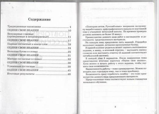 Пособие направлено на проверку выработанного орфографического навыка по изученной теме у учащихся начальной школы. По времени проверка должна занимать не более 15 минут. Преимущество данного вида работ в наглядности и доступности представленного материала. На каждую тему предложено пять заданий. Учащийся выполняет задание, вставляя пропущенные буквы. В правой колонке родитель может оценить выполненное задание, а внизу, в итоговой строчке, – высказать оценку словесно или выставить отметку (5 заданий соответствуют пятибалльной системе). В каждой теме 6 вариантов. После завершения темы представлена итоговая карточка «Оцени свои знания». Хотя можно и начать работу с этого задания, чтобы оценить свои возможности. Вариативность работы – тоже преимущество. Можно повторять как отдельную тему, так и темы вразбивку. Возможность сразу отработать ошибку – это тоже преимущество данного вида предложенного материала. Представленные темы соответствуют новым стандартам начального обучения.