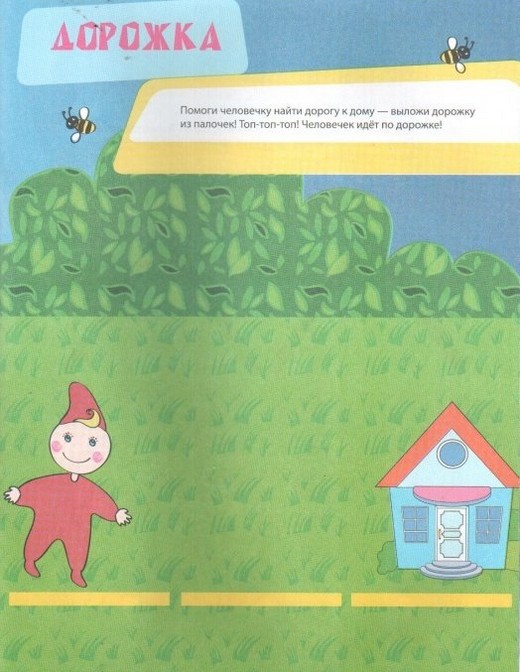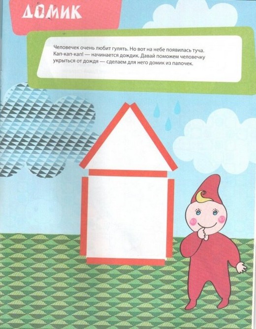 На страницах этой книжки малыш конструирует из счетных палочек - всем доступного материала для конструирования на плоскости. Складывая счетные палочки на картинке-основе, малыш создаст простые, но интересные изображения – дорожку для человечка и горы для барашка, заборчик для кролика, лесенку для обезьянки, будку для собаки, гриб для ежика, домик для человечка, тумбу для циркового слона. Все задания выполняются прямо на страничках книжки, содержащих яркие иллюстрации, что делает задание понятным, а его результат наглядным для малыша. Для выполнения заданий в книжке понадобятся счетные палочки.