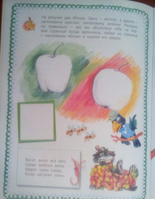 программе. Очень интересно, в какие цвета нужно раскрасить два яблока, лежащих