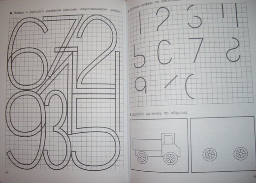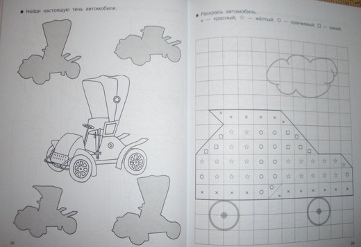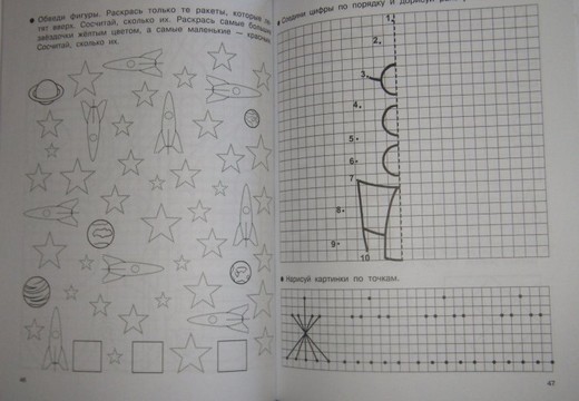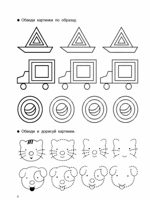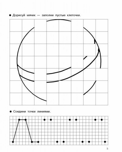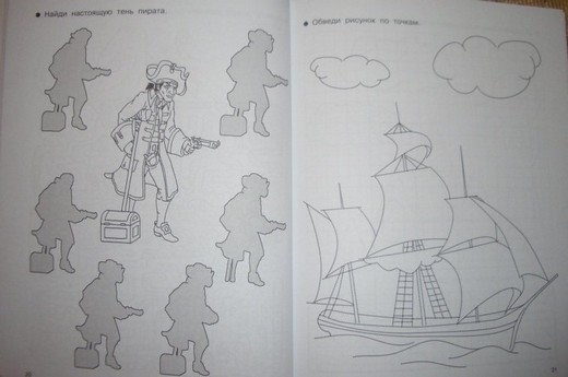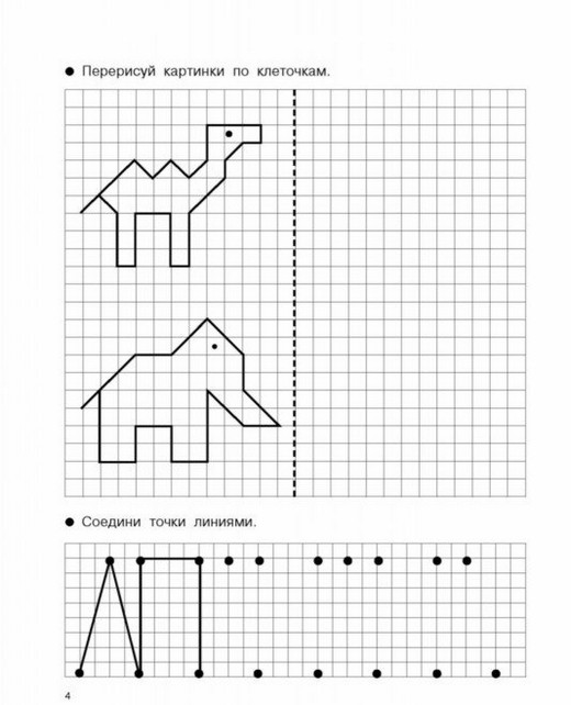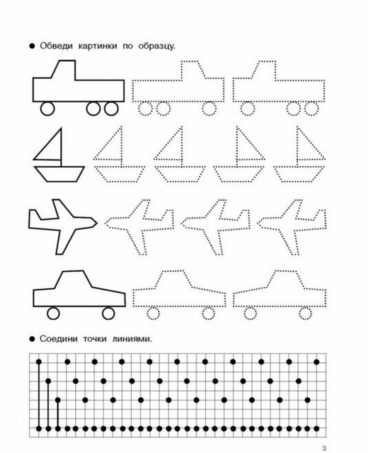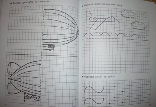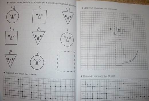 На страницах книги В.Г. Дмитриевой «1000 упражнений для мальчиков» – фигурки, орнаменты, узоры, картинки, нарисованные по клеточкам и точкам. Предложите малышу обводить рисунки, копировать орнаменты, дорисовывать вторые половинки, рисовать и раскрашивать картинки и узоры. Такие задания развивают произвольное внимание, пространственное мышление и координацию движений руки ребенка. Для дошкольного возраста.