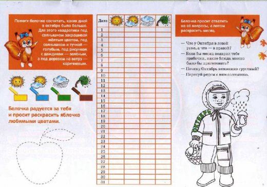 Белочкин календарь наблюдений за погодой Фесюкова – это замечательный обучающий подарок для ребенка."Путешествую от месяца Сентября к месяцу Августу, ребенок вместе с Белочкой научиться наблюдать и отмечать погоду, описывать цветные картинки, готовить подарки для мамы и для Белочки, а также, соединяя точки, получит важные и добрые слова о природе. А еще ребенок непременно разучит стихи, загадки, считалки, добавлялки. Малыш сможет по-своему раскрасить каждый месяц". Страницы оформлены ярко и красочно и непременно привлекут и завладеют вниманием ребенка. А информация и задания, которые там находятся увлекут ребенка в обучающее познавательный процесс с большим интересом.