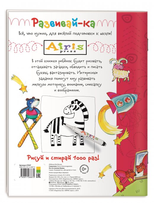 Купить книжку "На что похожи буквы. Рисуй и стирай" в Новосибирске Вы можете в магазине развивающих и настольных игр "Игры Почемучек".
