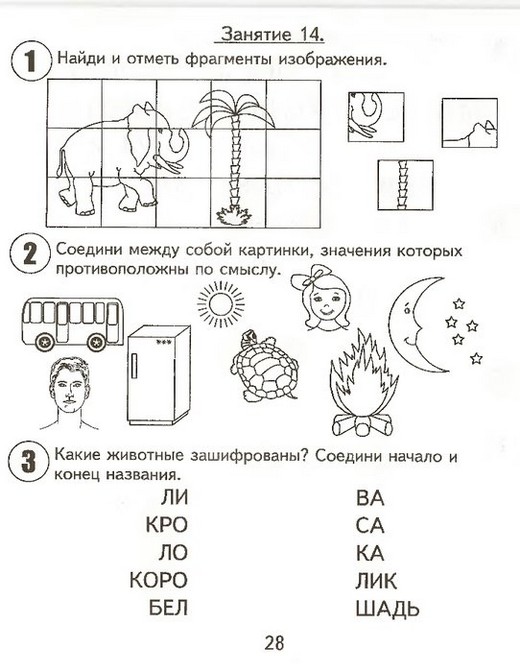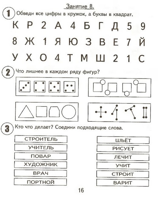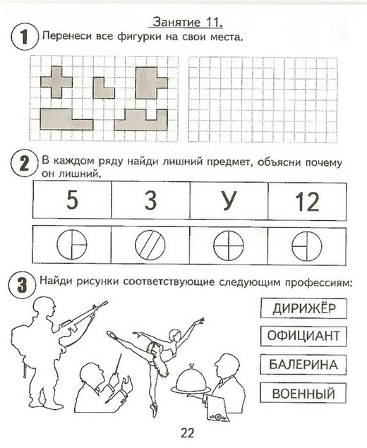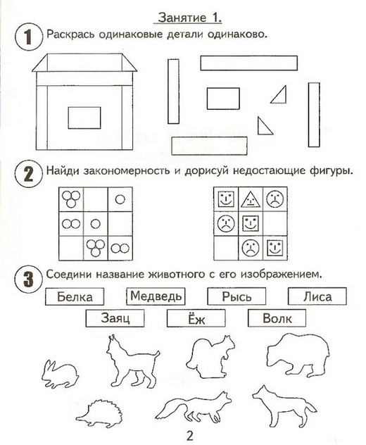 Вторая часть тетради включает в себя 15 занятий, каждое из которых содержит 6 заданий:Задание № 1 Направлено на развитие восприятия и внимания.