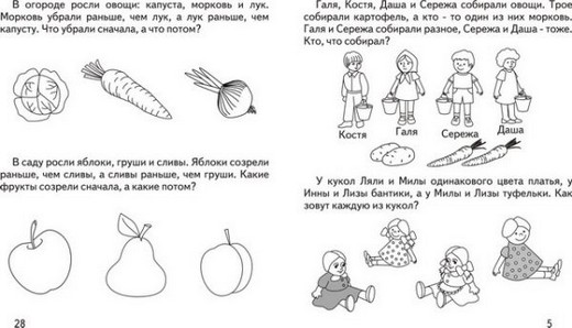 Занятия по этой тетради разовьют логическое мышление, научат малыша делать умозаключения, сравнивать, рассуждать и анализировать. Помогут малышу расширить знания об окружающем мире, развить связную речь и словарный запас, научиться выражать свои мысли. На каждой странице два задания. Объясните ребенку задание, помогите ему, если он затрудняется, задайте наводящие вопросы. Пусть малыш объяснит выполнение каждого задания.