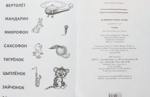 Всем известно, что чтение — основа успешного обучения ребёнка в школе. Однако хорошая техника чтения — это не только скорость. Важно, чтобы чтение было плавным, грамотным, безошибочным, чтобы ребёнок понимал прочитанное. Слова на каждой странице объединены определённой слоговой структурой и звуковой наполненностью. Для формирования правильного чтения ребёнок должен «начитаться» каждого типа слов, услышать и понять их мелодику и ритм. Работая по этой тетради, дети научатся находить гласные звуки в слове, определять первый и последний звуки в слове. В тетради отрабатываются навыки определения звуков в слове по порядку, нахождения пропущенных букв, составления слов из слогов, решения анаграмм — всё это требуется от школьника уже на начальном этапе обучения. Тетрадь рассчитана на совместную работу родителей и детей. Она может быть использована на логопедических занятиях в дошкольных образовательных учреждениях, а также на уроках русского языка в начальной школе.