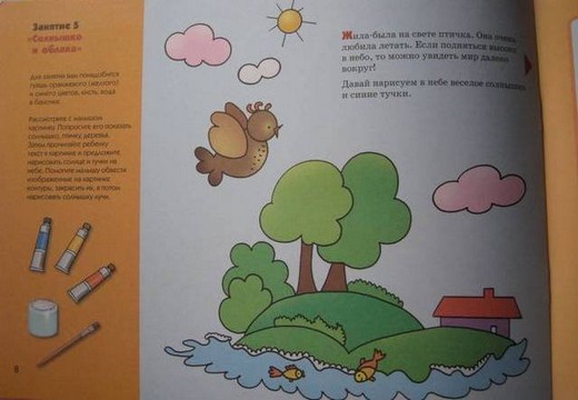 Каждый урок — это определенная ступень в развитии малыша. Альбом для занятий "Рисуем красками" — это своеобразная рабочая тетрадь, с помощью которой Вы сможете возвращаться к предыдущим урокам, повторять какие-то элементы, вспоминать, показывать ребенку его рисунки, достигнутые им результаты... Каждый урок — это своя маленькая история с красочными сюжетными картинками, чтение которой привлечет внимание ребенка.