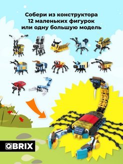 Представляем новинку от QBRIX! QBRIX KIDS – серия ярких детских конструкторов о мире животных. В каждом наборе тебя ждут прикольные насекомые, которых ты можешь собрать с помощью понятной видеоинструкции с интересными фактами о каждом из них. У тебя получится 12 маленьких фигурок или одна большая! Пошаговые видеоинструкции можно смотреть с любого устройства: телефона, планшета или компьютера. Также в каждый набор вложены бумажные инструкции с понятными схемами сборки. Познавай мир и наслаждайся творчеством вместе с QBRIX! Собери всю коллекцию фигурок из конструктора. Наши наборы обязательно понравятся вашему ребенку и станут любимой игрушкой для мальчиков и девочек. Это отличный способ провести время весело и с пользой. В наборе Мир жучков тебя ждут: Жук, Жук носорог, Паук, Жук дровосек, Сороконожка, Скорпион, Божья коровка, Термит, Таракан, Комар, Муравей, Шмель и большой Царь Скорпионов.