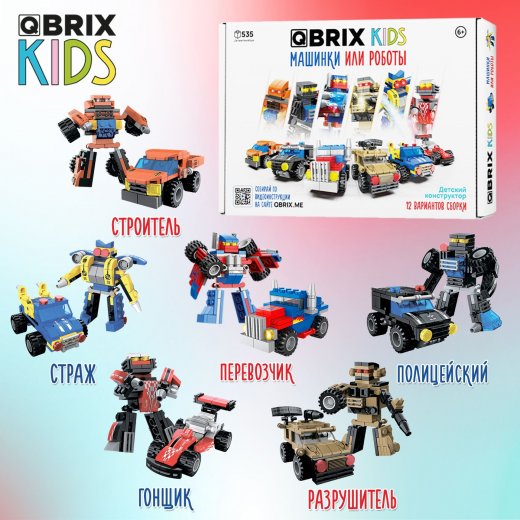 Купить Конструктор Qbrix kids Машинки или роботы в Новосибирске Вы можете в магазине настольных и развивающих игр "Игры Почемучек"