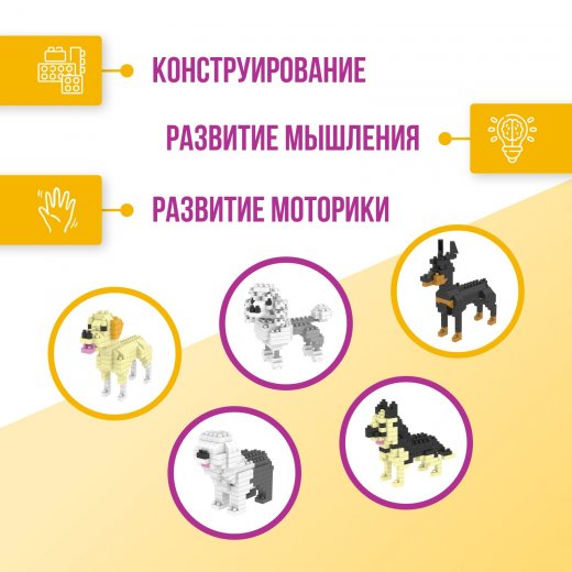 Блочный конструктор-сюприз Cute dogs позволит собрать из множества деталей фигурку милого питомца.