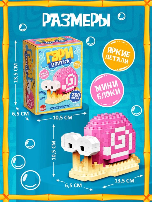 Блочный конструктор «Улитка Гэри» — это увлекательный набор для сборки, который порадует как маленьких поклонников анимационного мира, так и любителей конструирования. В комплекте 200 деталей, из которых можно создать яркую и детализированную фигурку милого питомца.