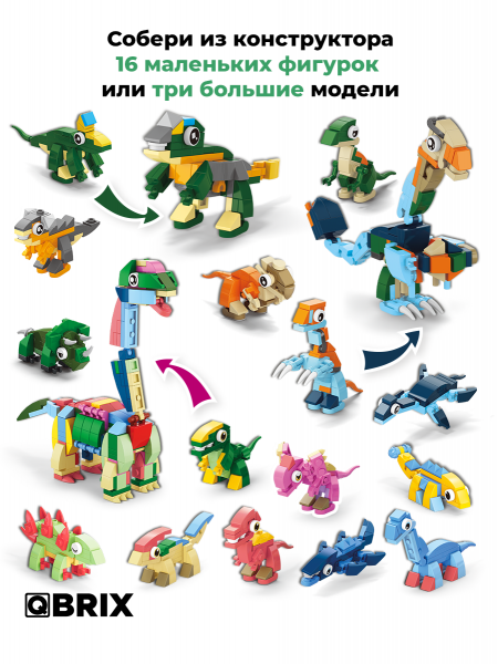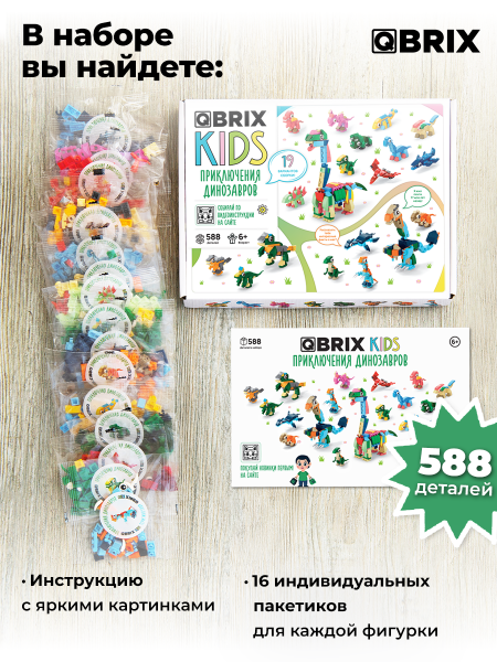 QBRIX KIDS — серия ярких детских конструкторов о мире животных, роботах, машинках и не только. В каждом наборе ребёнка ждут прикольные фигурки, которые он может собрать с помощью понятной видеоинструкции с интересными фактами о каждом из них. Видеоинструкции можно смотреть с любого устройства: телефона, планшета или компьютера. Также в каждый набор вложены бумажные инструкции с понятными схемами сборки.