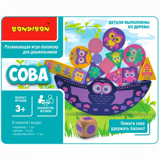Купить Развивающую игру балансир Сова Bondibon в Новосибирске Вы можете в магазине развивающих и настольных игр "Игры Почемучек".