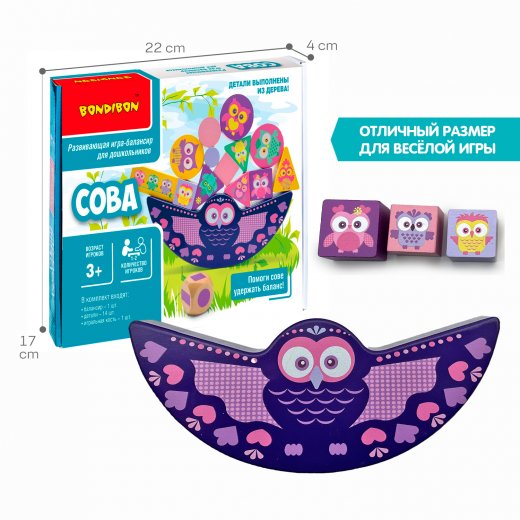 С весёлым балансиром СОВА интересно развивать мелкую моторику, пространственное мышление, концентрацию внимания, логику и зрительное восприятие. А милые деревянные детали в виде совушек будут радовать юных испытателей.