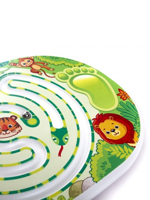 2. Задача, управляя ногами балансиром провести металлический шарик по красочному лабиринту. Нескучные физкульт. минутки включайте в режим дня ребенка.