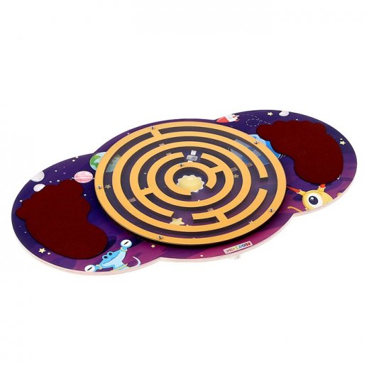 6. Игра «Балансирующий лабиринт» (игра применима для балансиров с лабиринтом). Рассмотрите вместе с ребенком лабиринт на балансире. Предложите ребенку покачать балансир, нажимая ладошками на края так, чтобы шарик закатился в центр лабиринта. Затем предложите ребенку закатить шарик в центр лабиринта, стоя на балансире. Усложните задание – предложите ребенку пройти лабиринт, балансируя на доске и одновременно рассказывая стихи.
