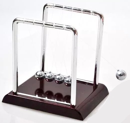 Продолжительность работы такого оригинального подарка напрямую зависит от веса и размера шариков: чем больше их диаметр и чем они тяжелее, тем дольше будет длиться данный процесс, и наоборот. Сам маятник — это механическая система, придуманная Исааком Ньютоном для демонстрации преобразования энергии различных видов друг в друга: кинетической в потенциальную и наоборот. В отсутствие сил трения система могла бы действовать вечно и систему можно было бы назвать вечным двигателем, но в реальности это недостижимо.