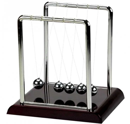 Продолжительность работы такого оригинального подарка напрямую зависит от веса и размера шариков: чем больше их диаметр и чем они тяжелее, тем дольше будет длиться данный процесс, и наоборот. Сам маятник — это механическая система, придуманная Исааком Ньютоном для демонстрации преобразования энергии различных видов друг в друга: кинетической в потенциальную и наоборот. В отсутствие сил трения система могла бы действовать вечно и систему можно было бы назвать вечным двигателем, но в реальности это недостижимо.