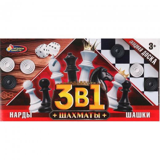 Комплектация: игровое поле - 1 шт, 32 шахматные фигуры, 30 шашек, 3 игральных кубика